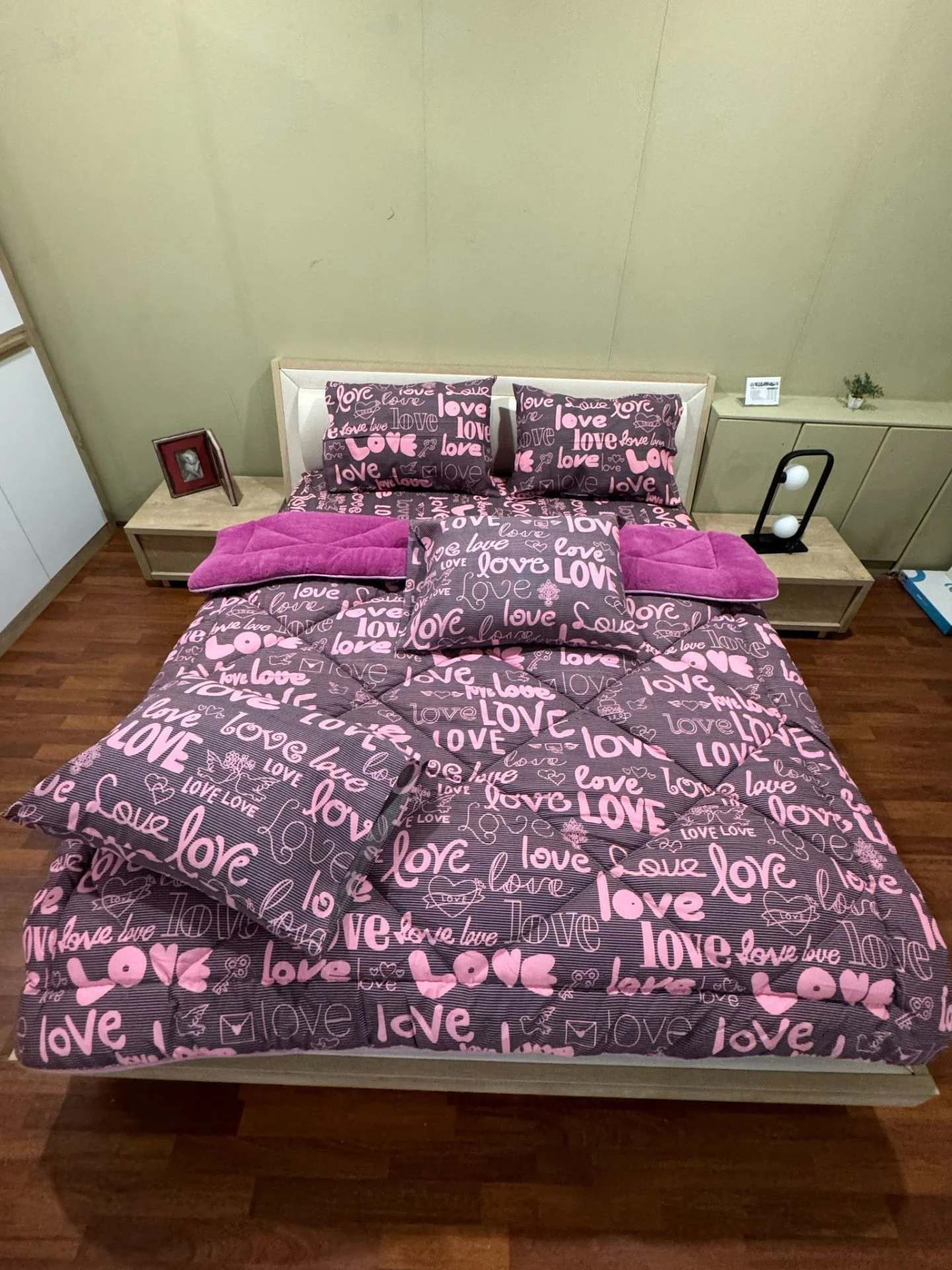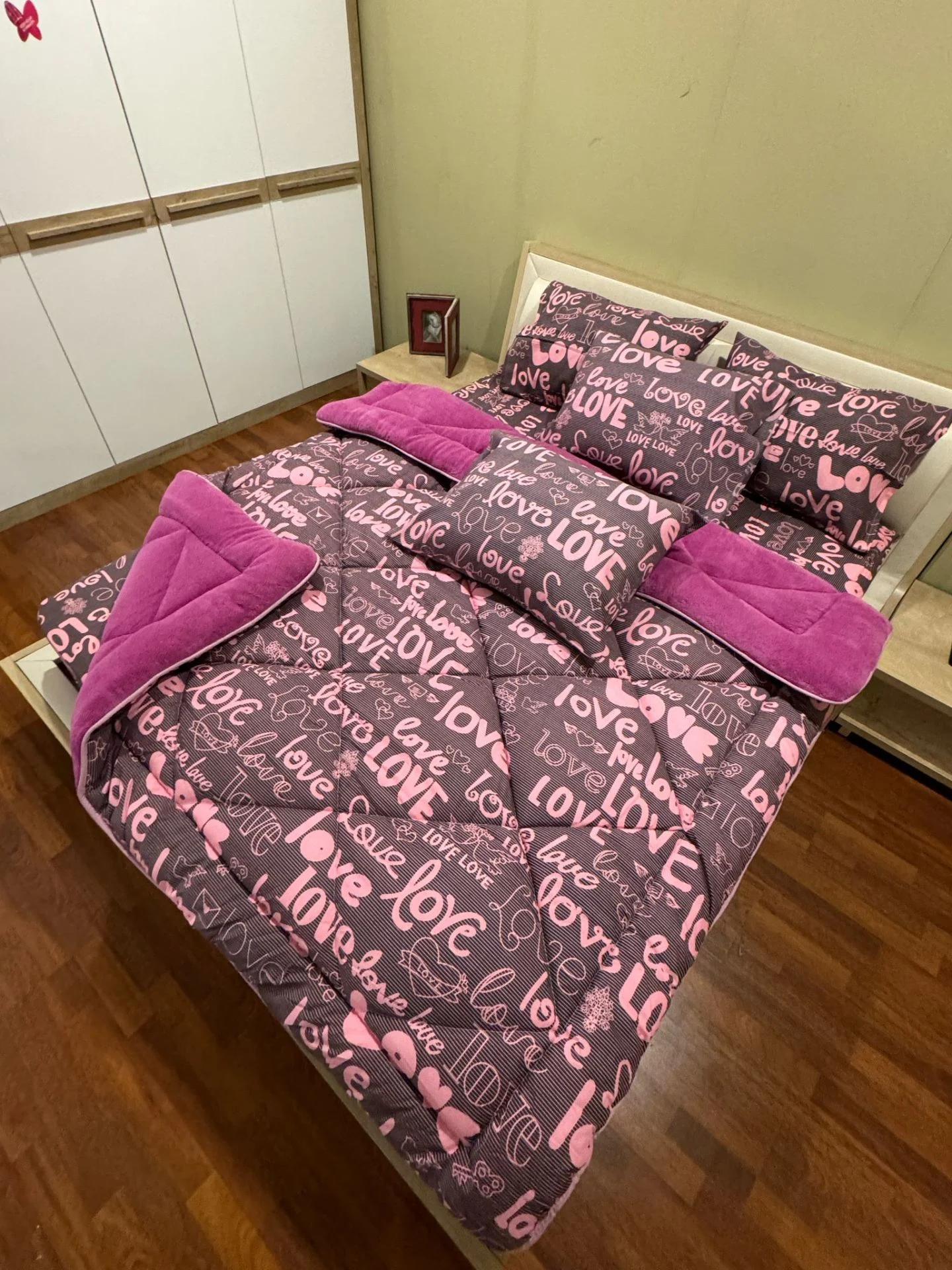 Çift Kişilik Welsoft Pufidik Uyku Seti Love Desenli Mürdüm