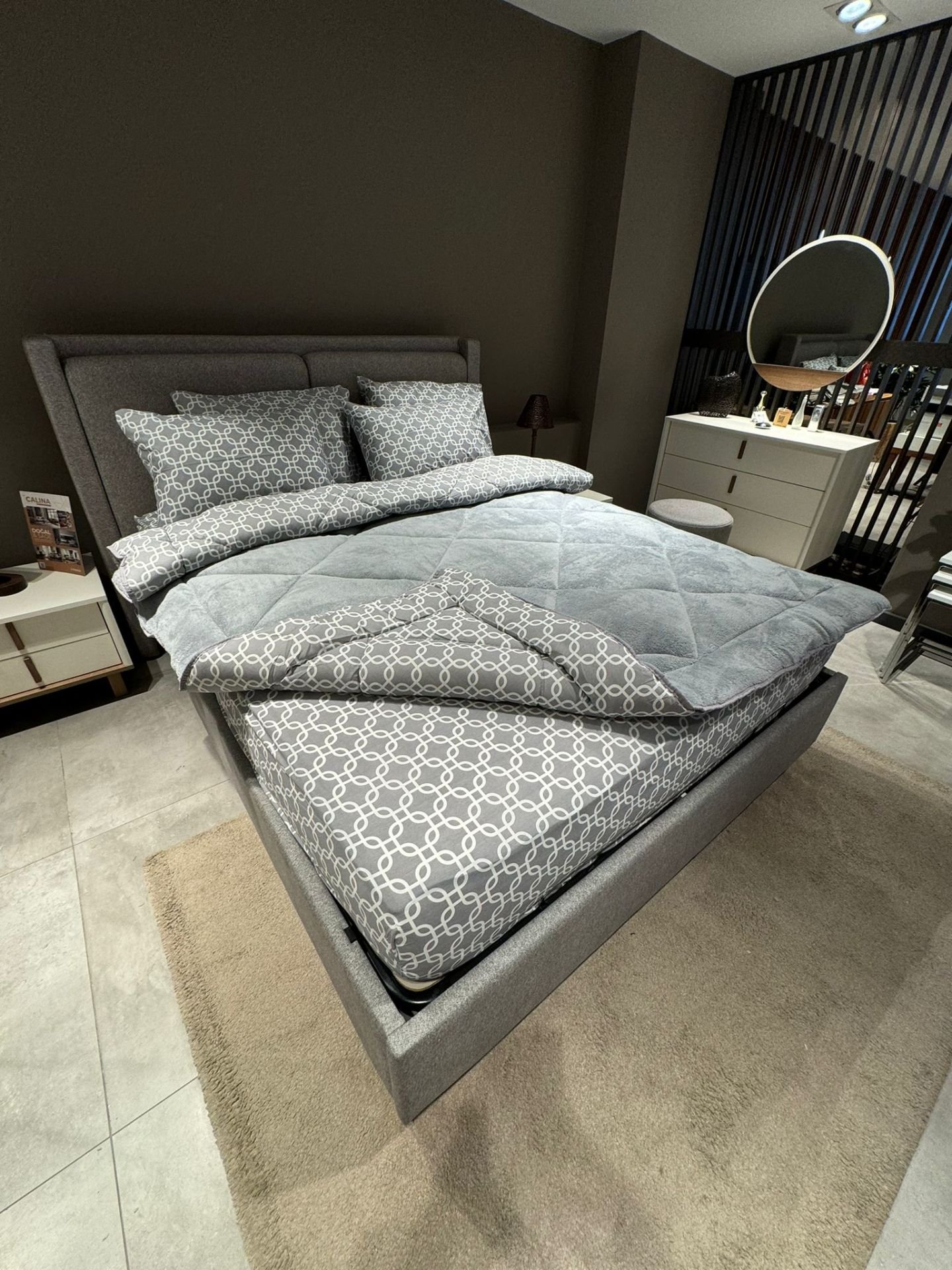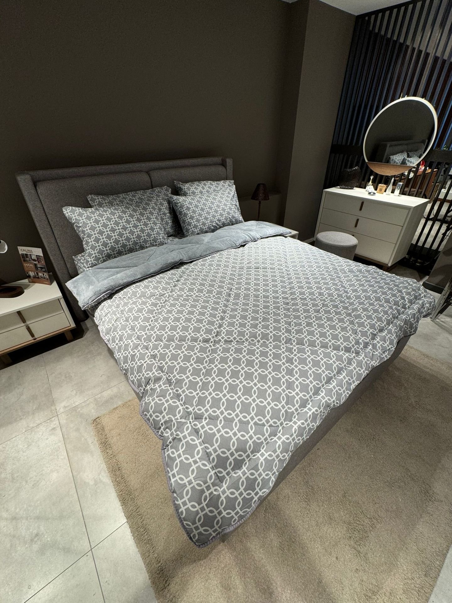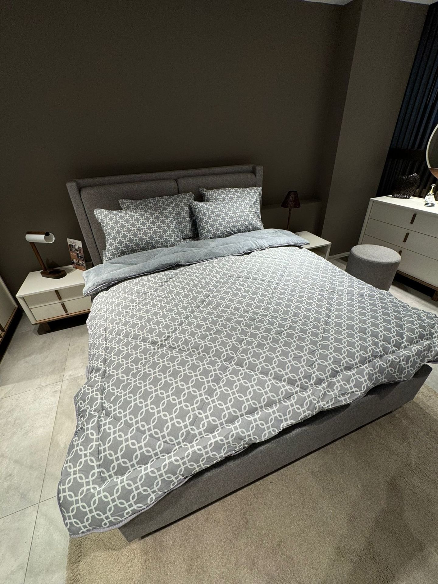 Beyaz zemin üzerine şık kareli desenleriyle sade ama çok zarif bir hava katıyor. Hem gözünüze, hem uykunuza hitap ediyor. 💫