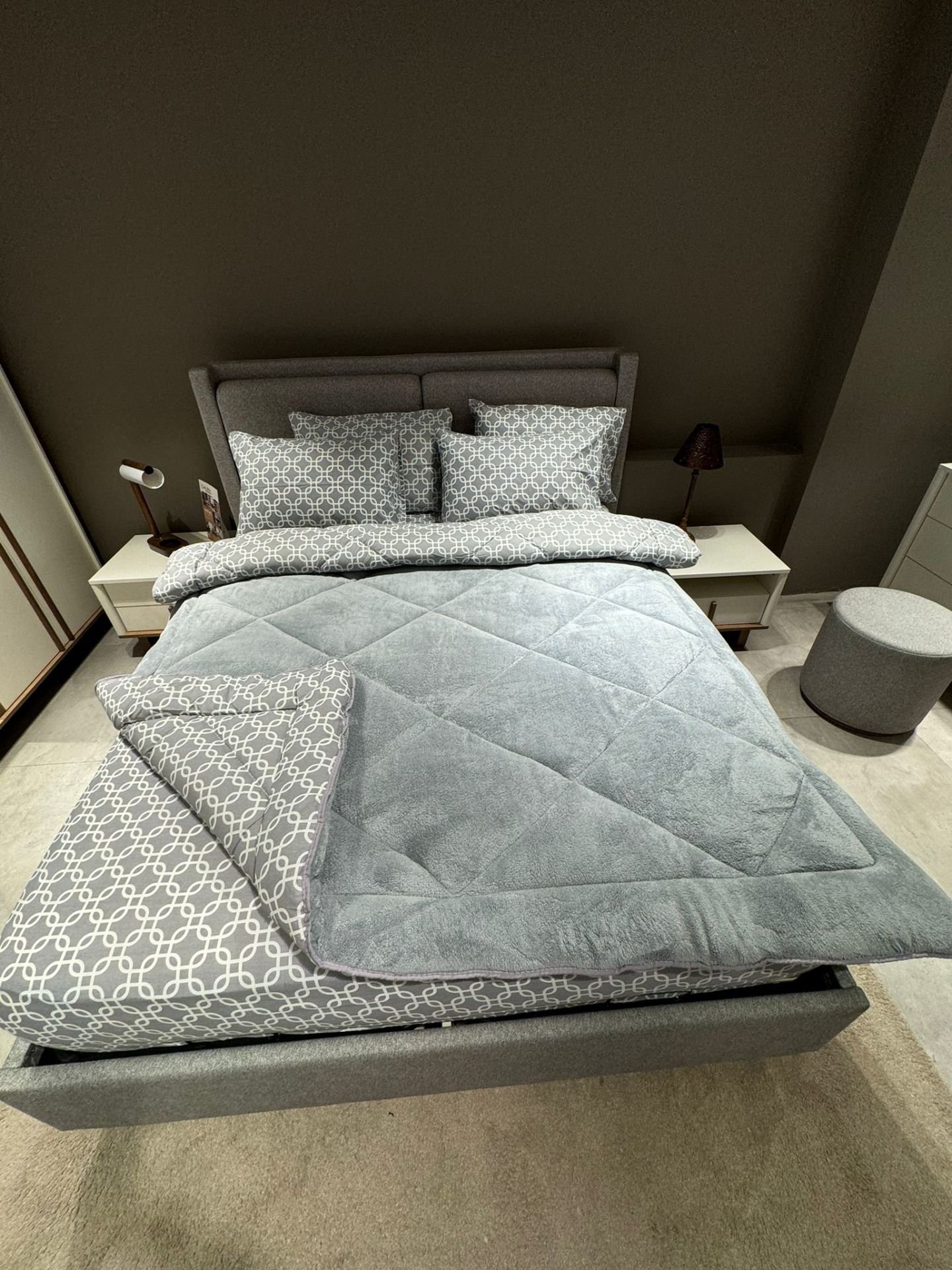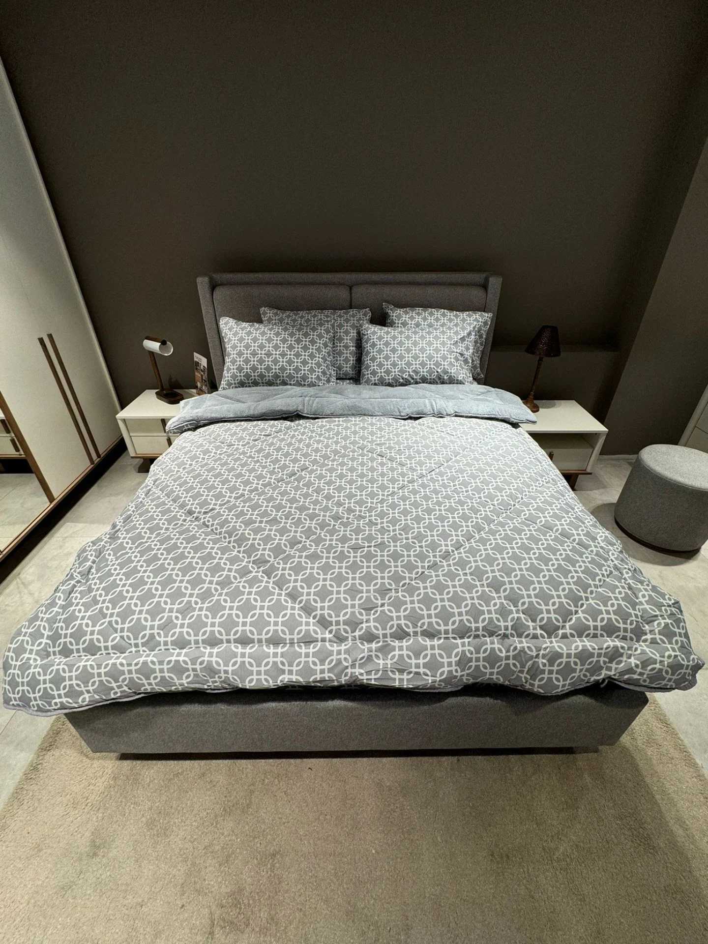 Çift Kişilik Welsoft Pufidik Uyku Seti Gri Zincir Desenli