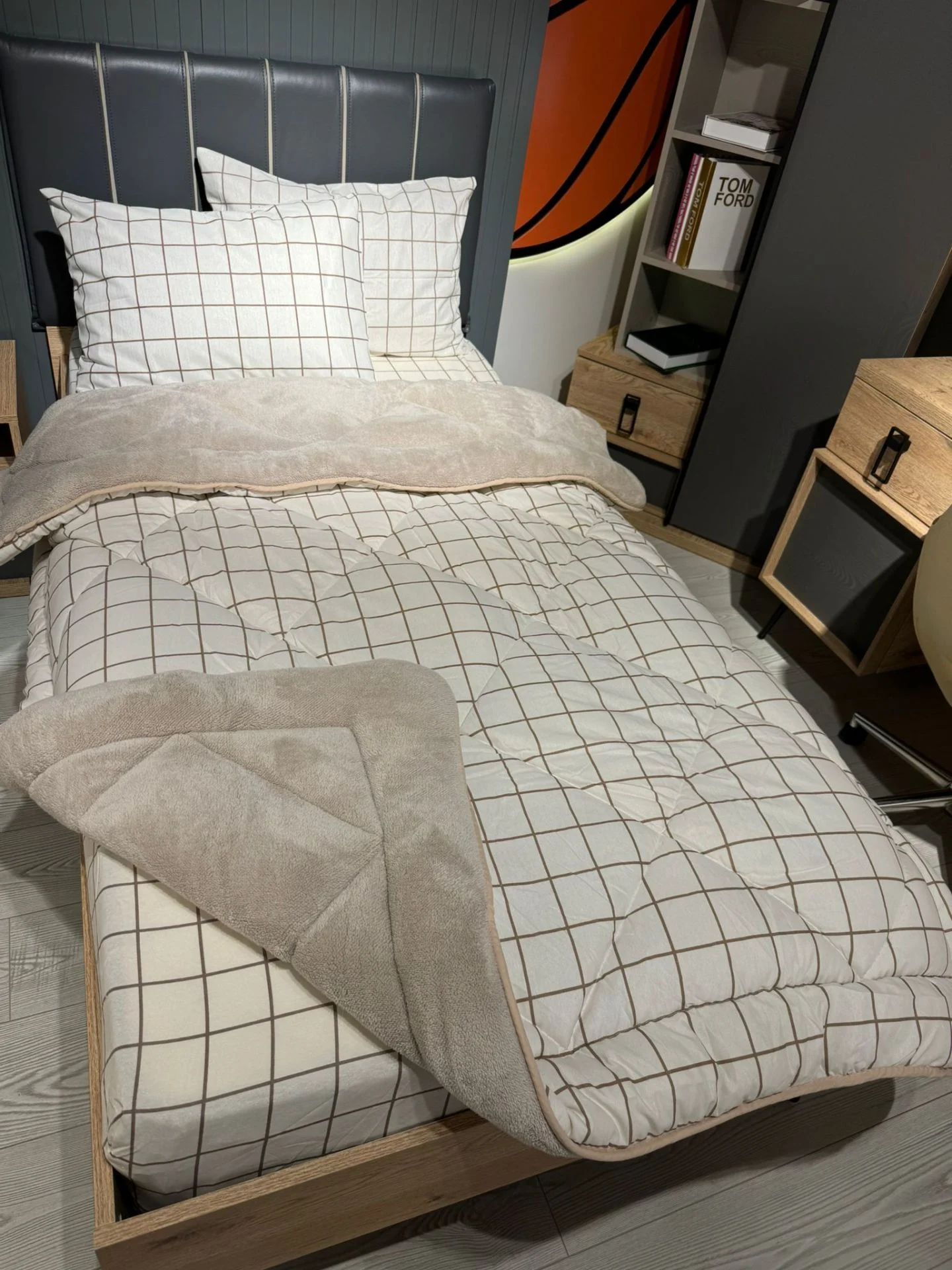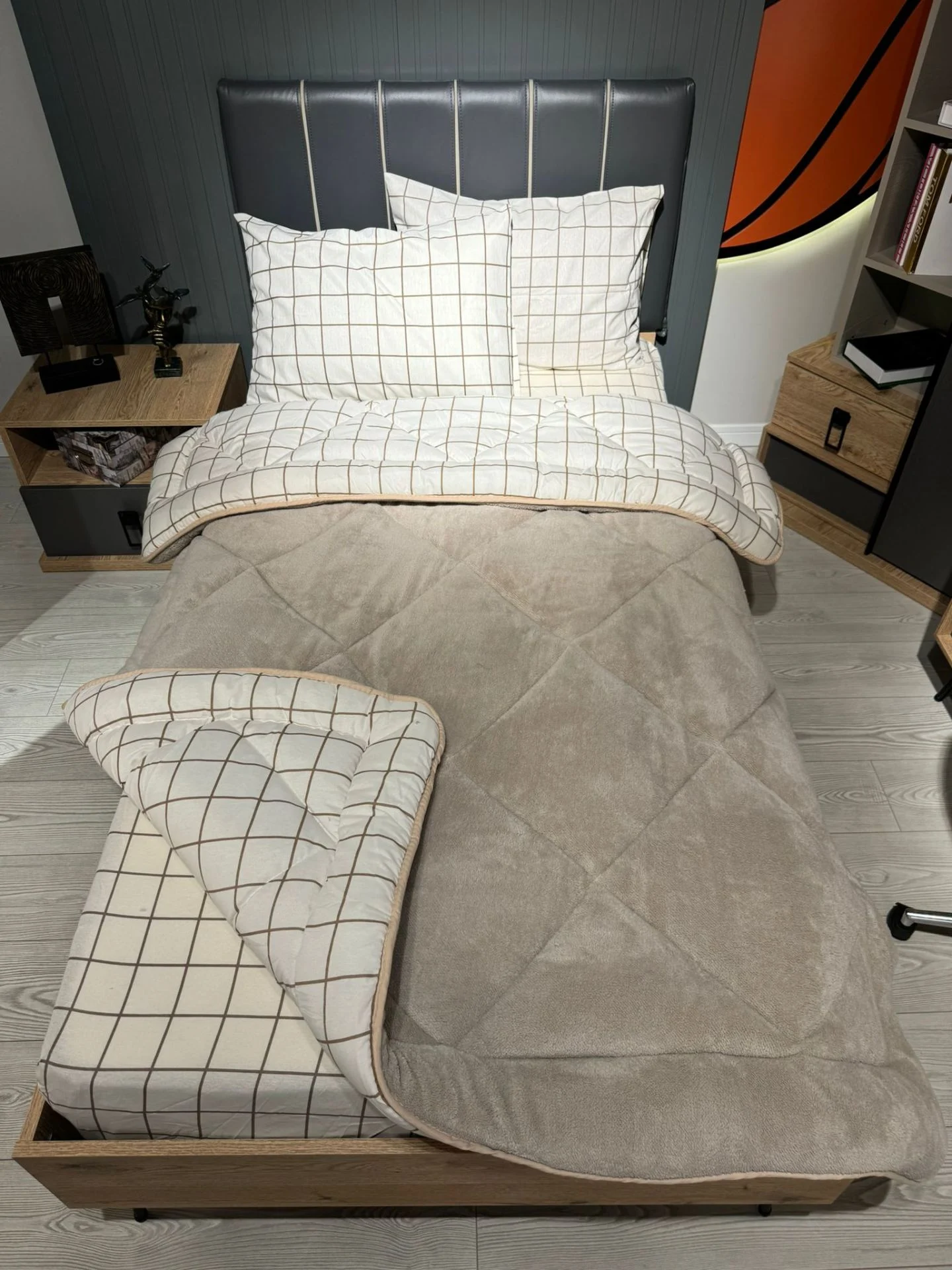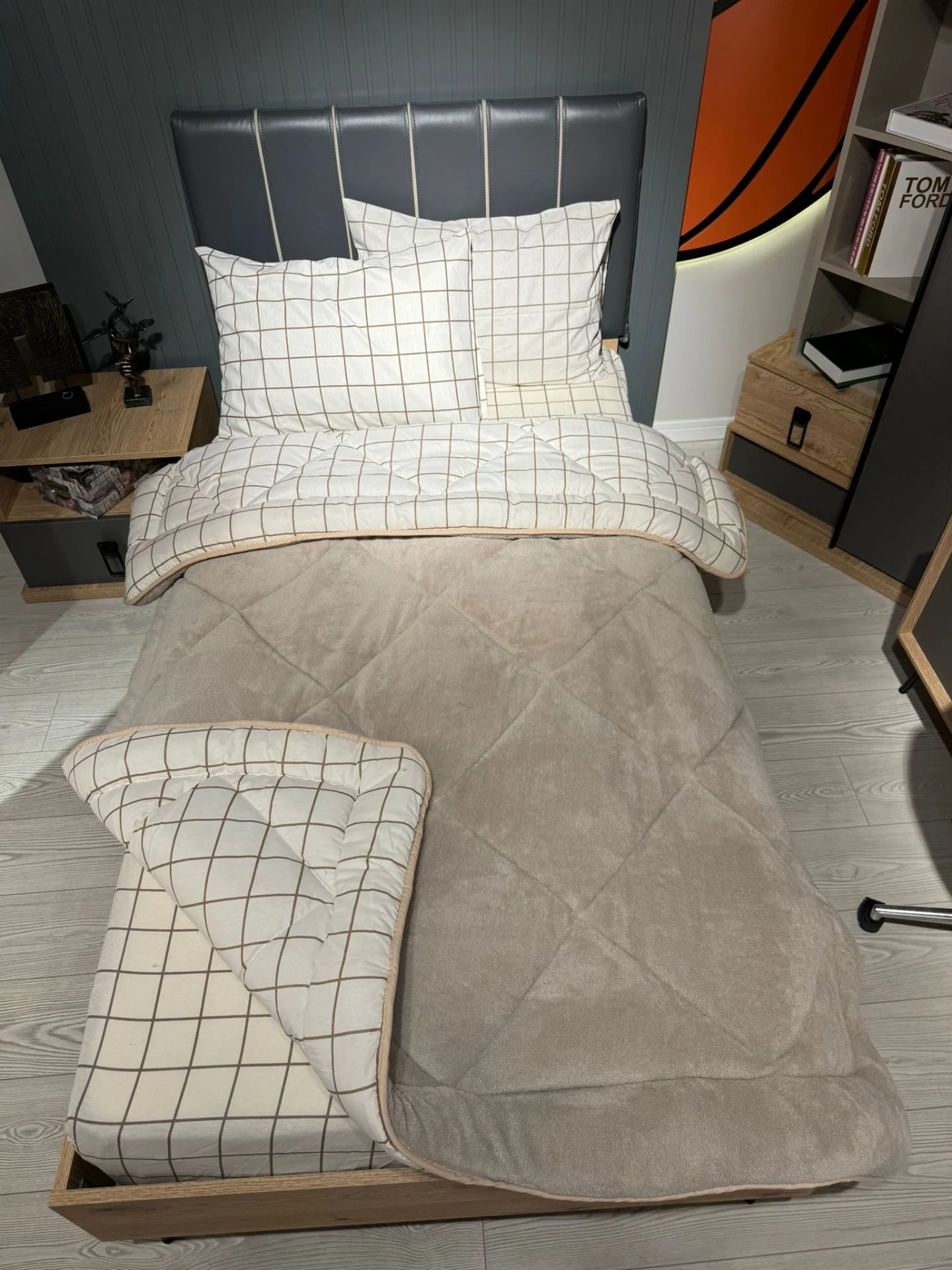 Beyaz zemin üzerine şık kareli desenleriyle sade ama çok zarif bir hava katıyor. Hem gözünüze, hem uykunuza hitap ediyor. 💫