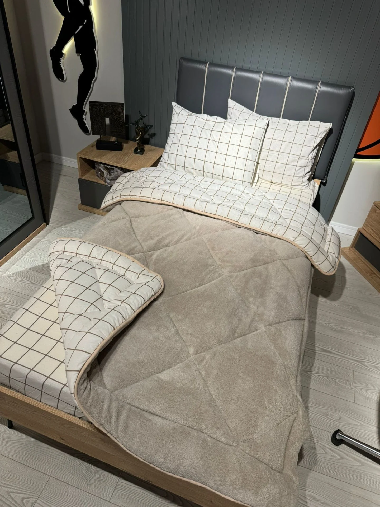 Tek Kişilik Welsoft Pufidik Uyku Seti Gri Zincir Desenli